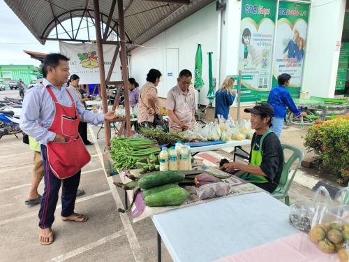 ณ ตลาดนัดคนไทยยิ้มได้หน้า ธกส. อำเภอคลองขลุง จังหวัดกำแพงเพชร