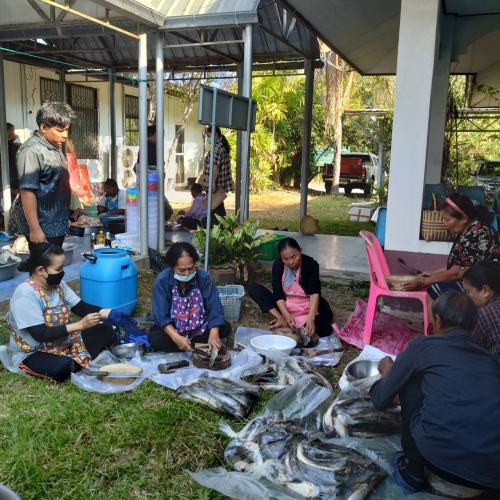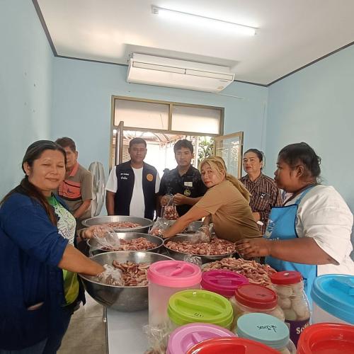 4. การสาธิตอาชีพให้ครัวเรือนเป้าหมาย และให้ครัวเรือนเป้าหมายได้มีส่วนร่วมในการฝึกปฏิบัติอาชีพจริง ได้แก่ หมูแดดเดียว ปลาแดดเดียว ไข่เค็ม โดยวิทยากรปราชญ์ชุมชนด้านอาชีพ